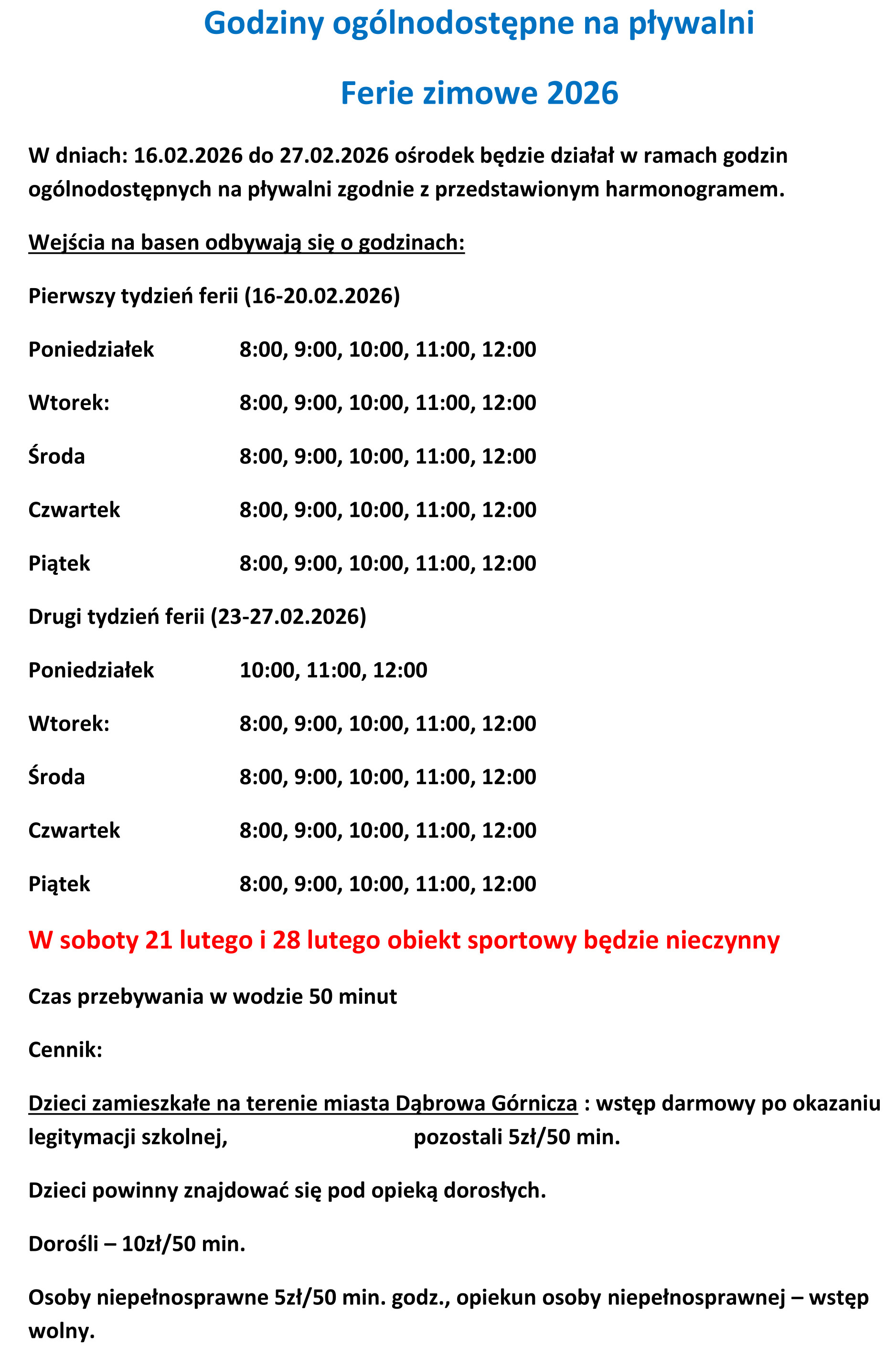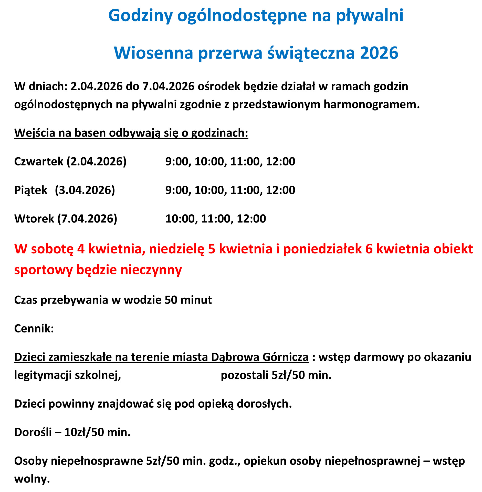 KOMUNIKAT O STANIE JAKOŚCI WODY NA PŁYWALNI CKZiU Dąbrowa Górnicza