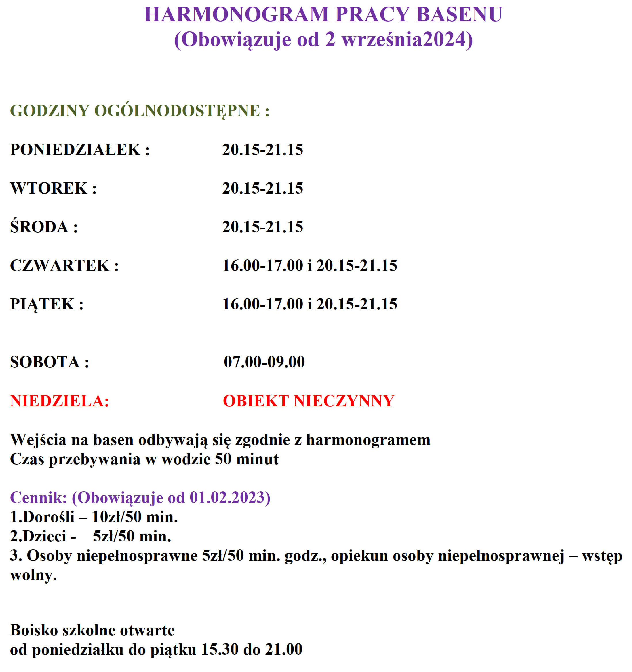 - pływalnię